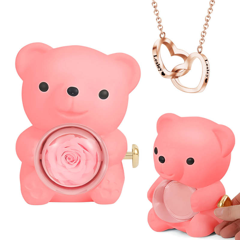 Engraved Heart Necklace with Real Rose Bear Giftbox Rose Shaped Necklace Gift Box Jewellery Gift Box