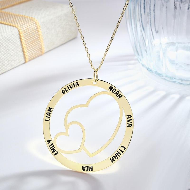 Engraved Name Necklace With Double Hearts Circle Elegant Pendant Jewelry Gifts For Her