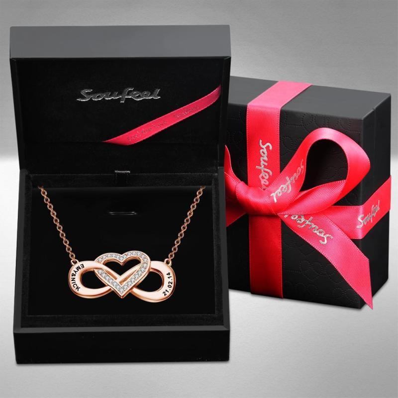 Engraved Necklace Infinity Necklace with Heart Name Necklace Couple's Gifts Rose Gold Plated