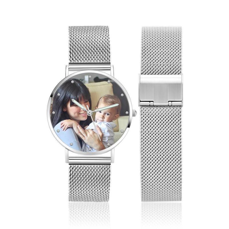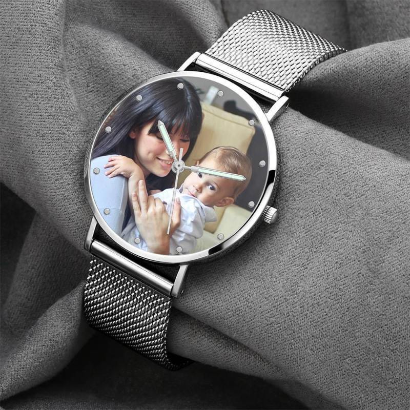 Engraved Photo Watch with Luminous Pointer Alloy Bracelet Photo Watch 40mm - Unisex