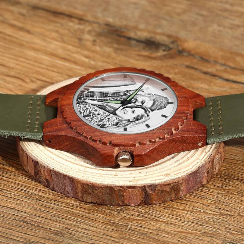 Unisex Engraved Photo Watch 48mm Wood Grain and Dark Green Strap - Sketch