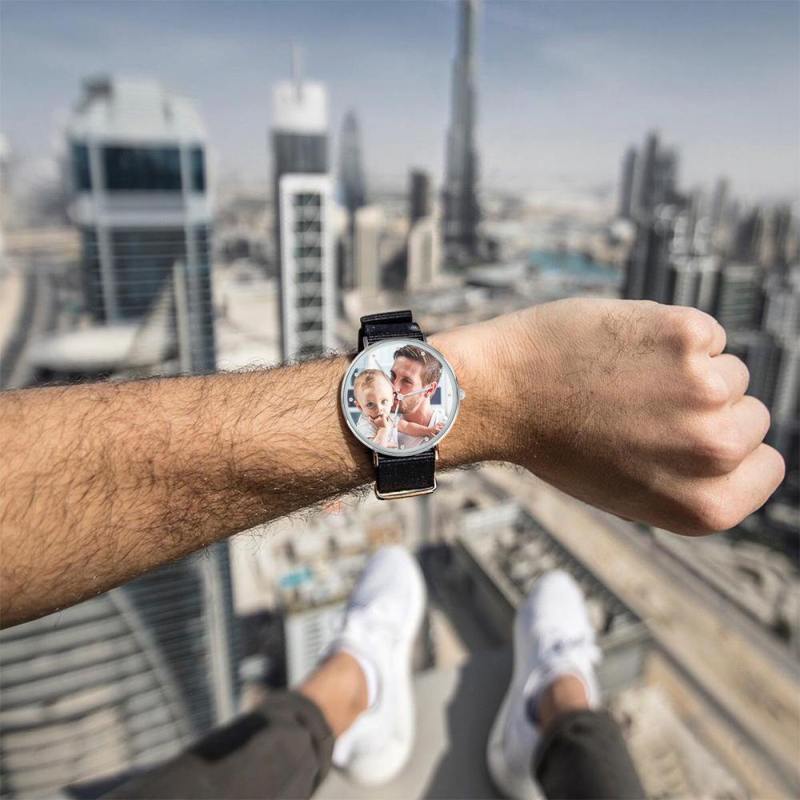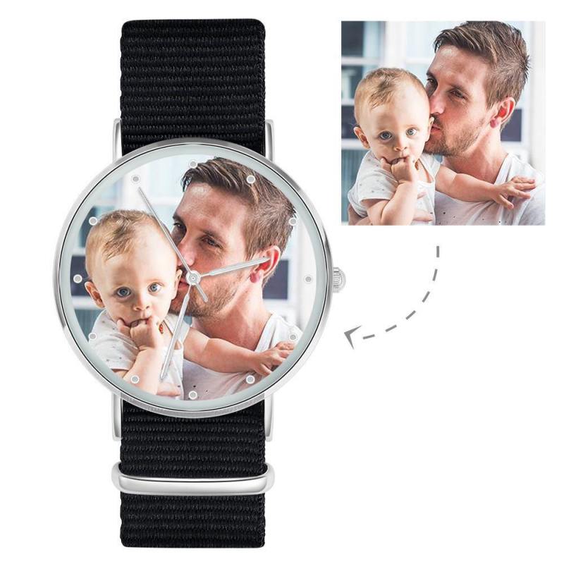 Personalized Engraved Watch, Custom Your Own Photo Watch with Black Strap