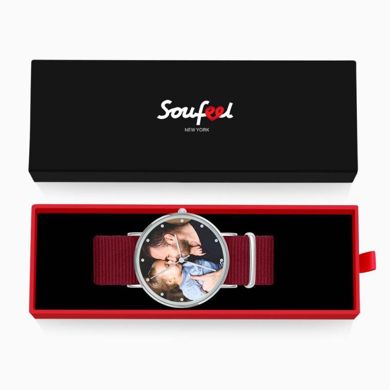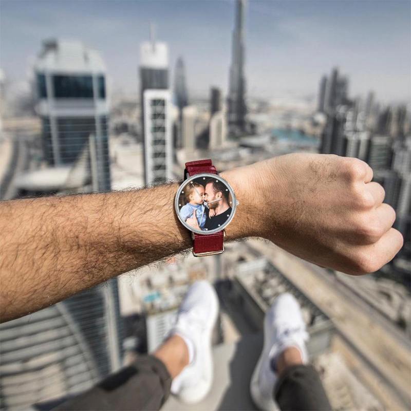 Personalized Engraved Watch, Custom Your Own Photo Watch with Red Strap