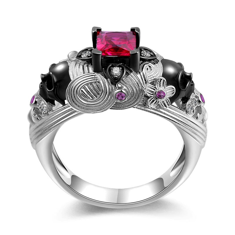 Female Eternal Flame Ring Black Gold Plated 925 Sterling Silver