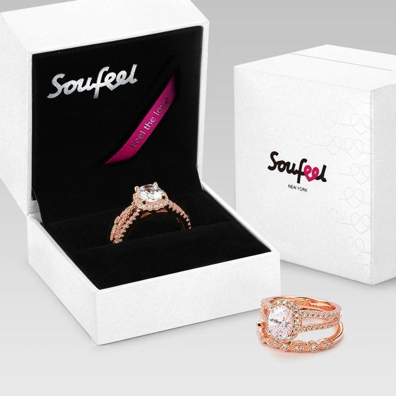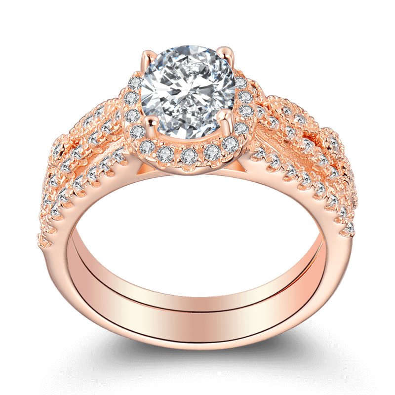 Female Romance Of Love Wedding Ring Set Rose Gold 925 Sterling Silver