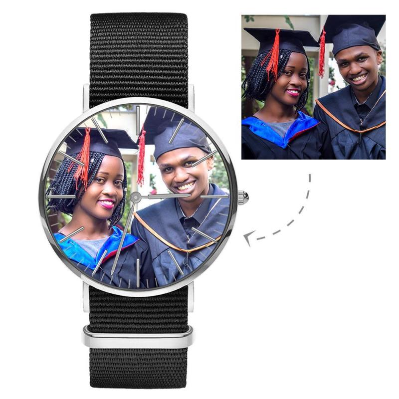 Graduation Gifts Photo Watch - Personalized Engraved Watch Black Strap
