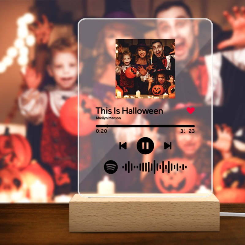 Halloween Gift Custom Music Glass Family Photo Scannable Music Plaque Night Light