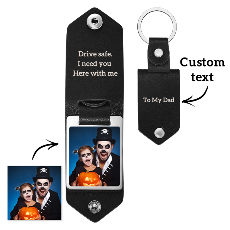 Halloween Gift Personalized Leather Photo Keychains Custom Engraved Text Commemorative Keychain Anniversary
