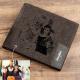 Men's Bifold Custom Inscription Photo Engraved Wallet - Coffee Leather Gift for Men