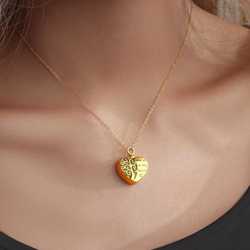 Engraved Urn Necklace Custom Heart Pendant Necklace - Gold Plated