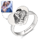 Heart Photo Engraved Ring with Engraving Platinum Plated Silver