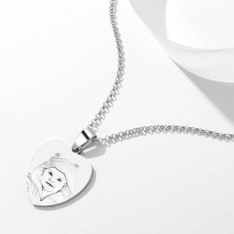 Heart Photo Engraved Tag Necklace With Engraving Stainless Steel