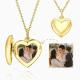 Heart Printing Photo Locket Necklace with Engraving 14k Gold Plated