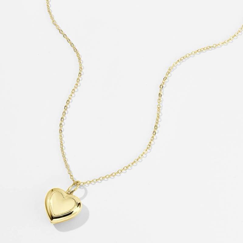 Heart Printing Photo Locket Necklace With Engraving 14k Gold Plated