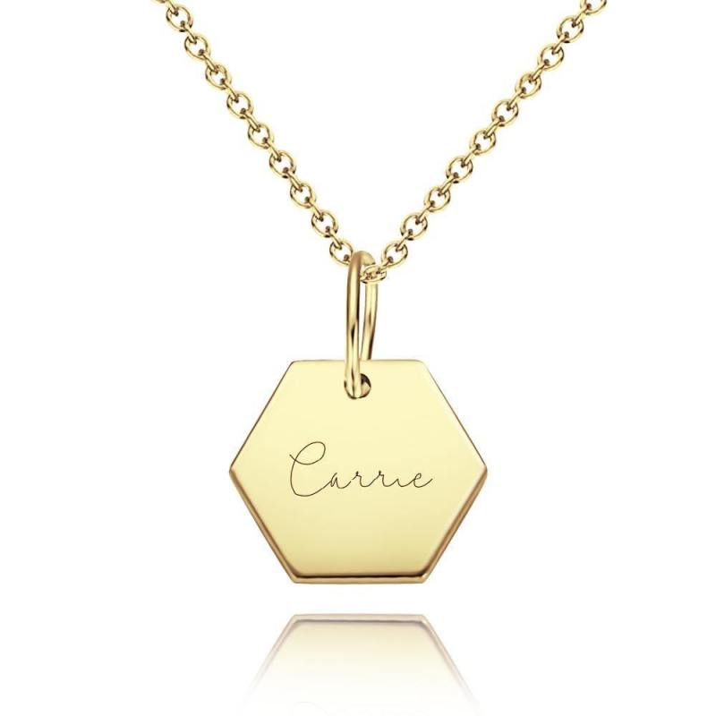 Hexagon Tag Necklace Engraved Necklace for Her Rose Gold Plated