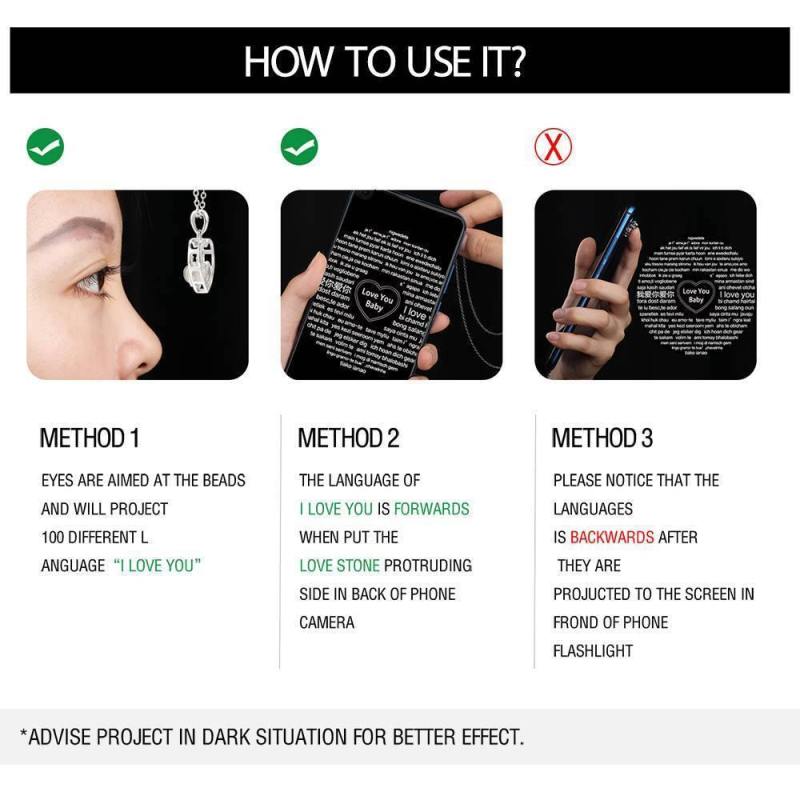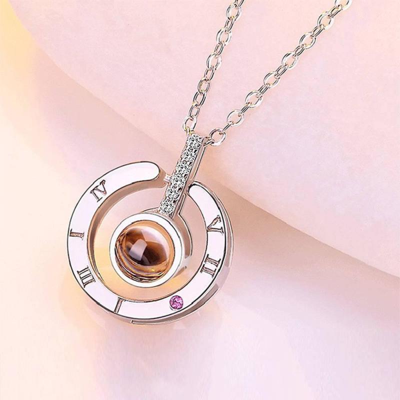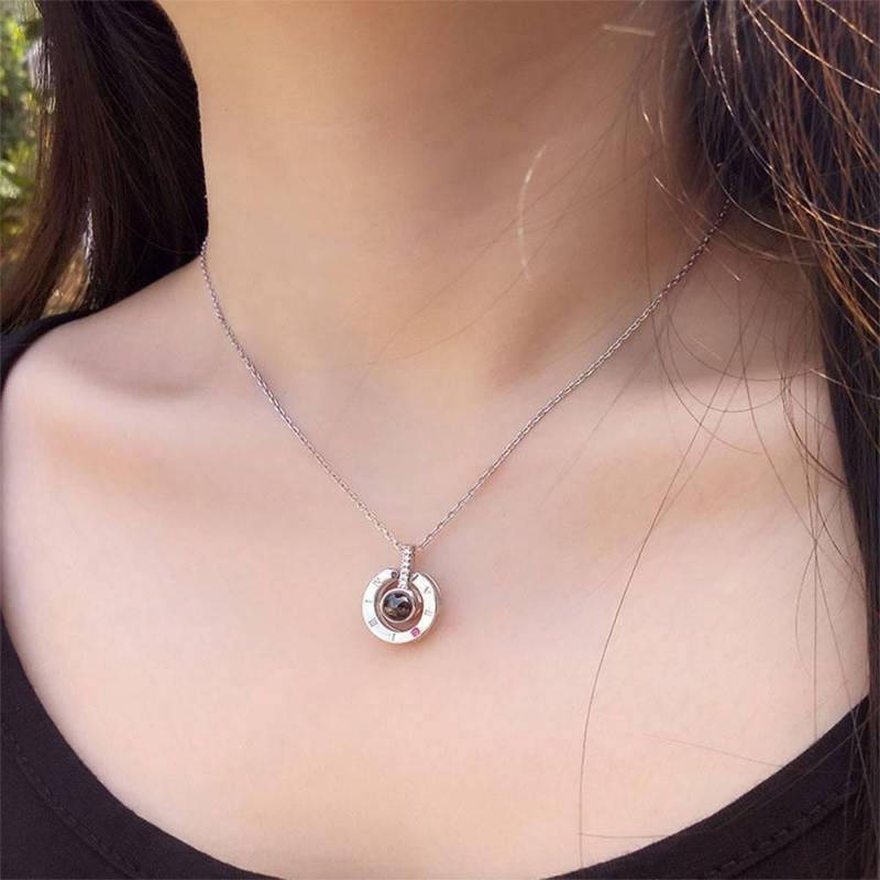 I Love You Necklace in 100 Languages Projection Engraved Necklace Round-shaped Silver