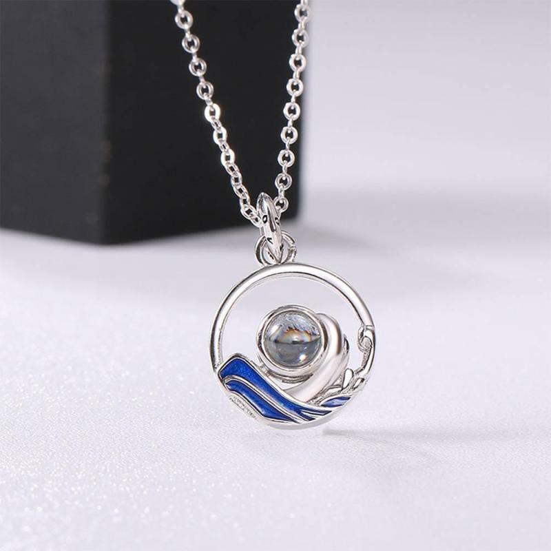 I Love You Necklace in 100 Languages Projection Engraved Necklace Unique Gift Silver - Women's