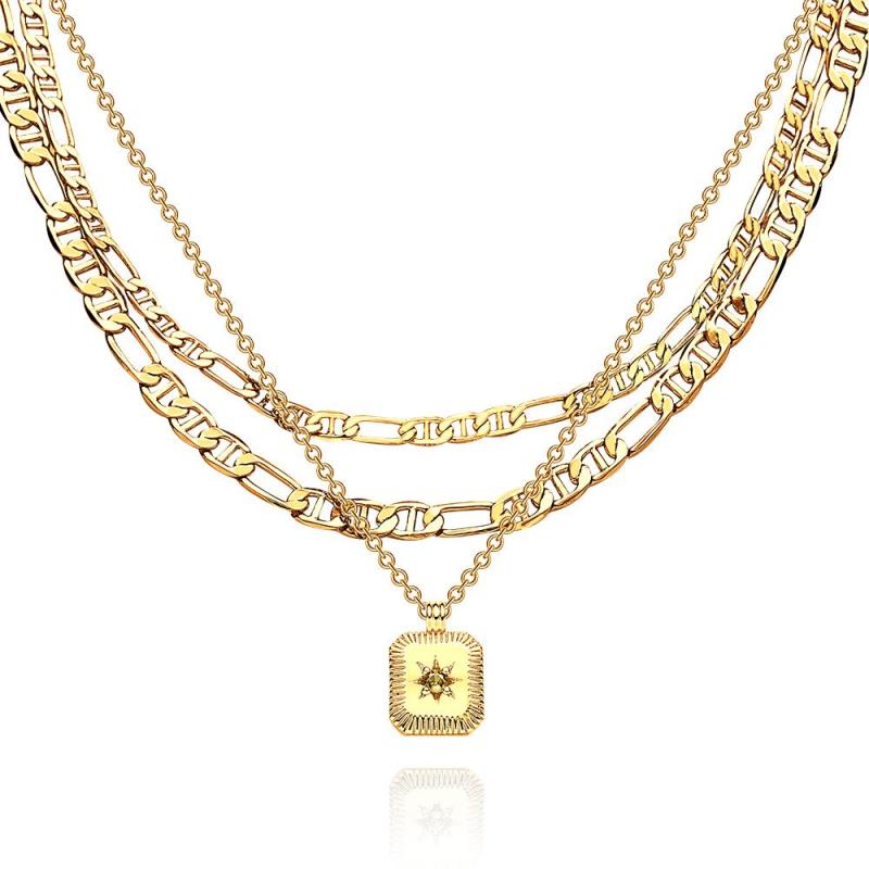 Layered Custom Necklace Birthstone Star Ridge Pendant Necklace