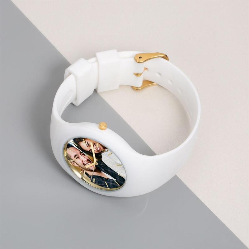 Men's Silicone Engraved Photo Watch Men's Engraved Photo Watch 41mm White Strap