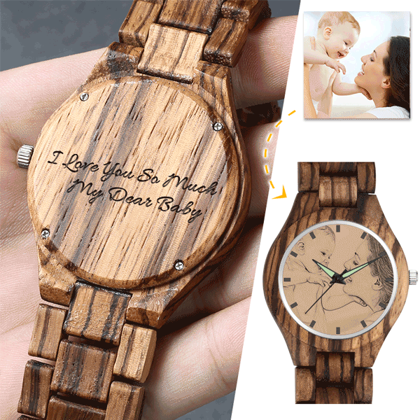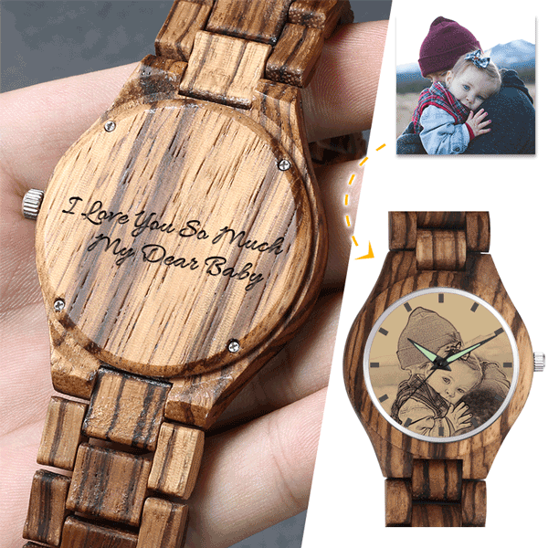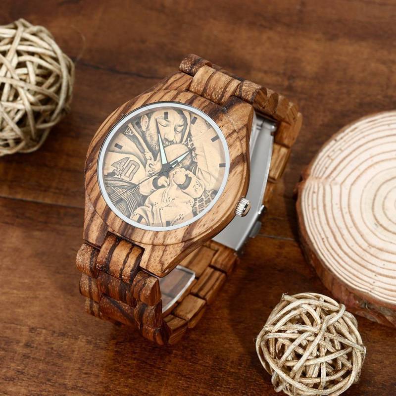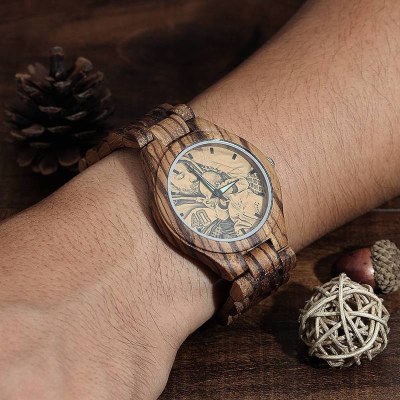 Men's Engraved Wooden Photo Watch Wooden Strap 45mm For Dad