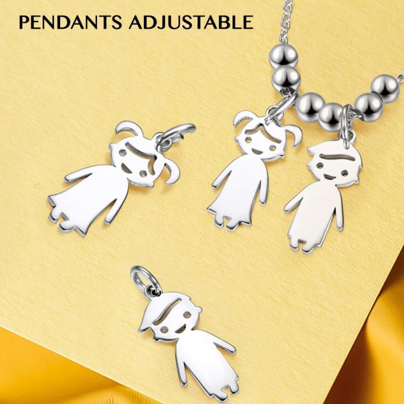 Mother's Necklace with 2-5 Children Charms Stainless Steel in 14K Gold Plated