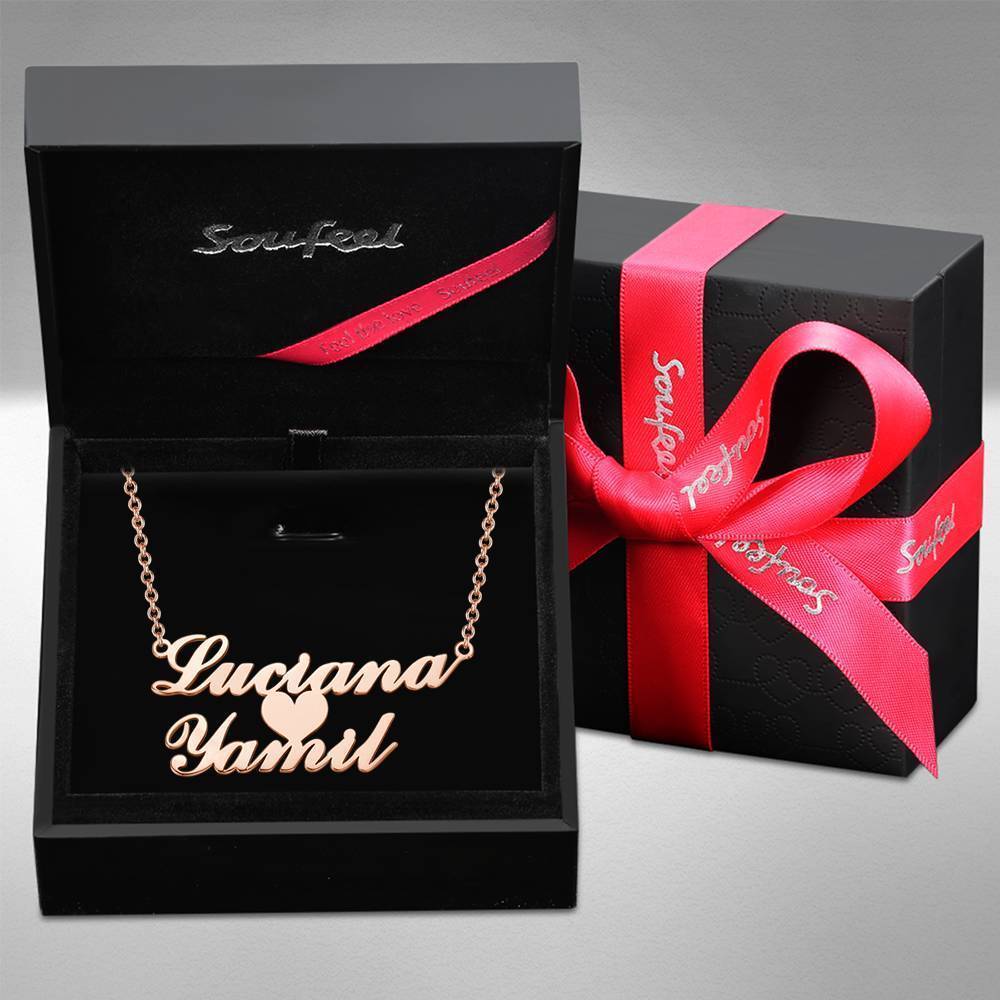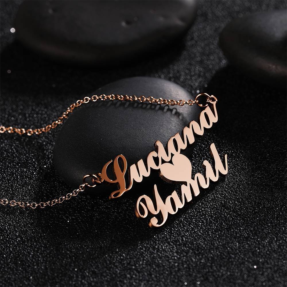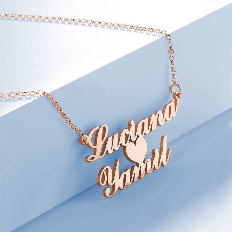 Name Necklace, Custom Two Nameplate Pendant Gift Rose Gold Plated - Silver