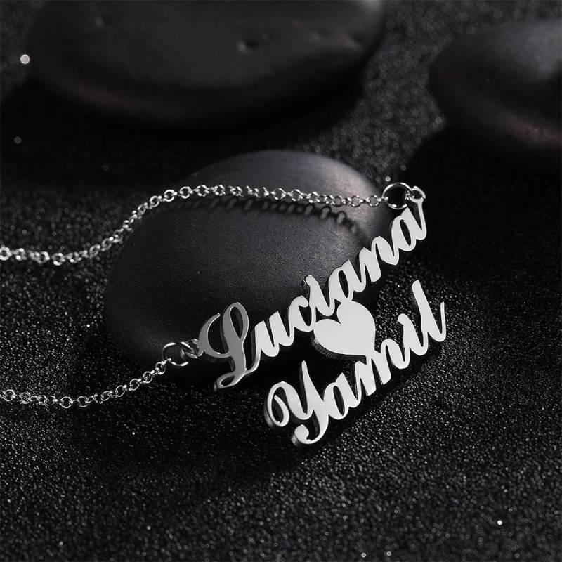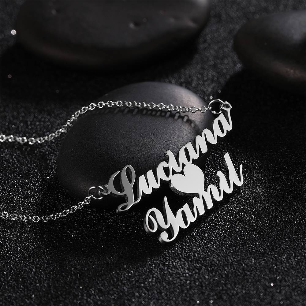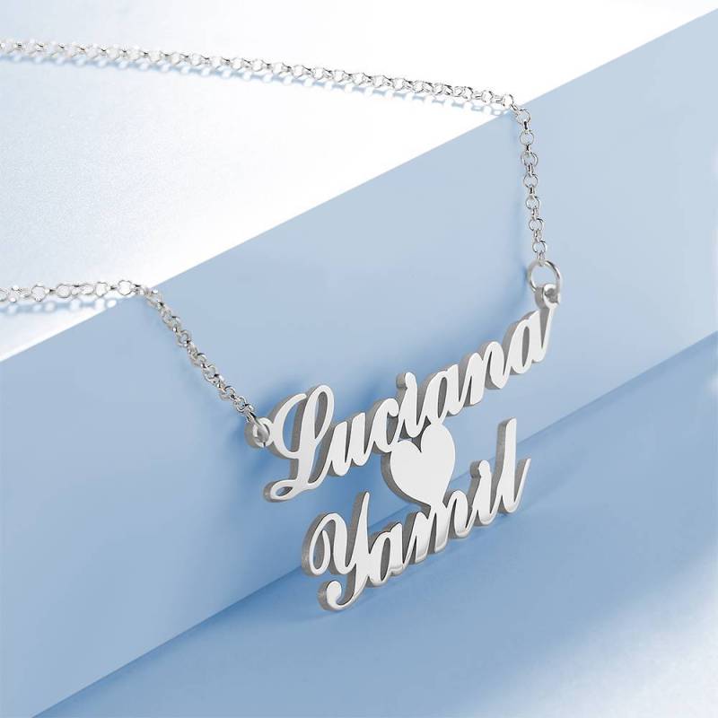 Name Necklace, Custom Two Nameplate Pendant Silver