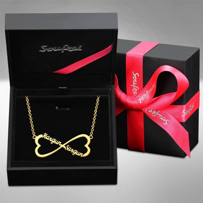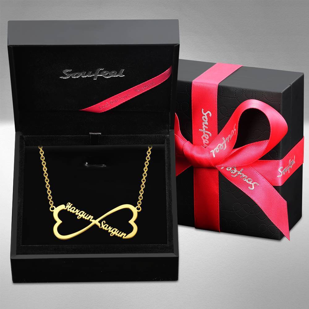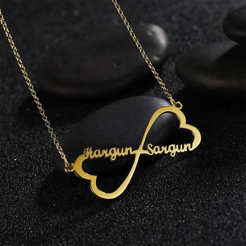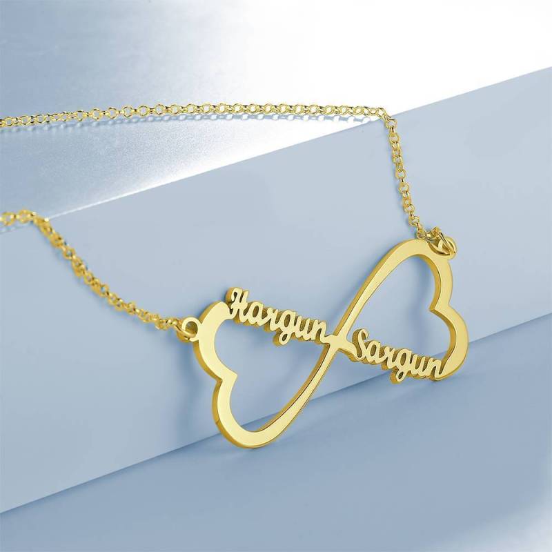 Name Necklace, Infinity Heart Necklace Two Names 14K Gold Plated - Silver