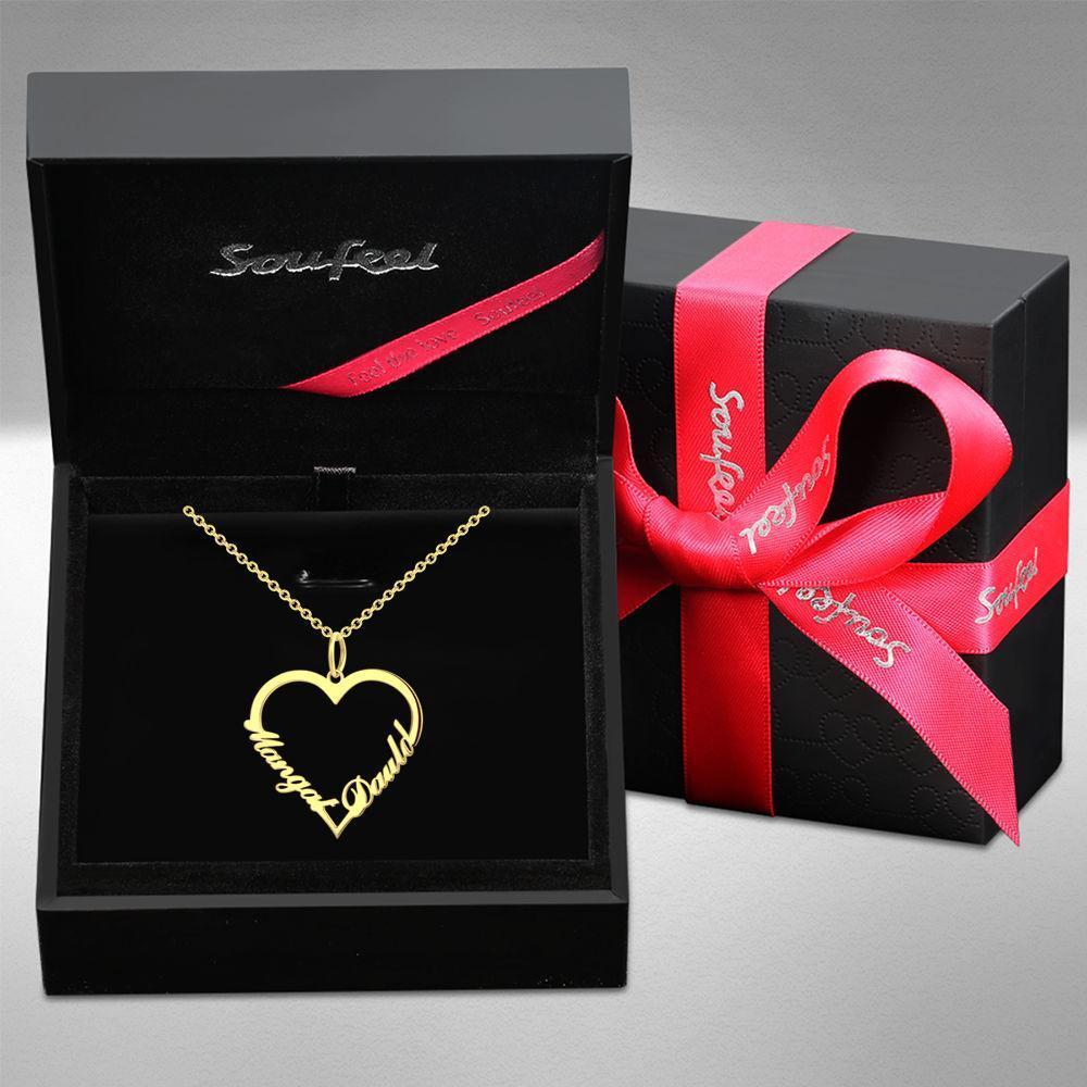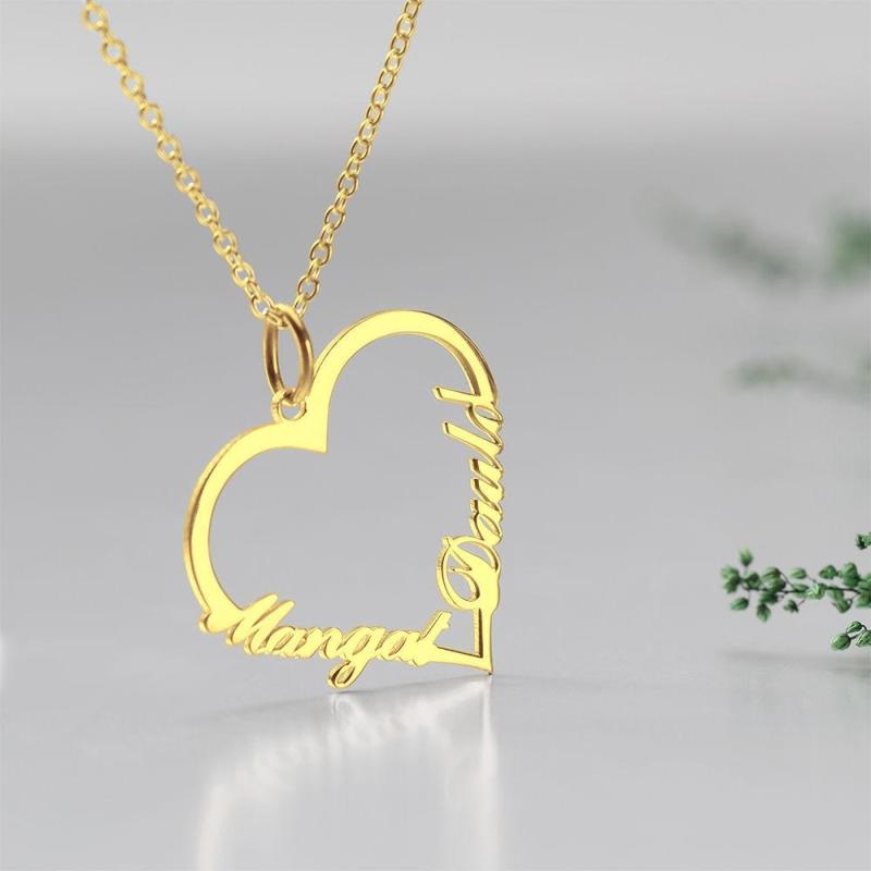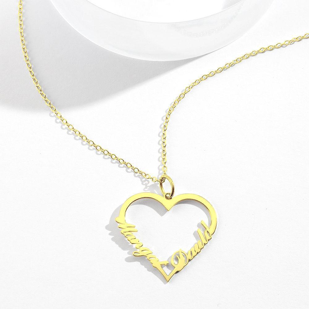 Name Necklace, Personalized Heart Two Name Necklace Silver 14K Gold Plated - Golden