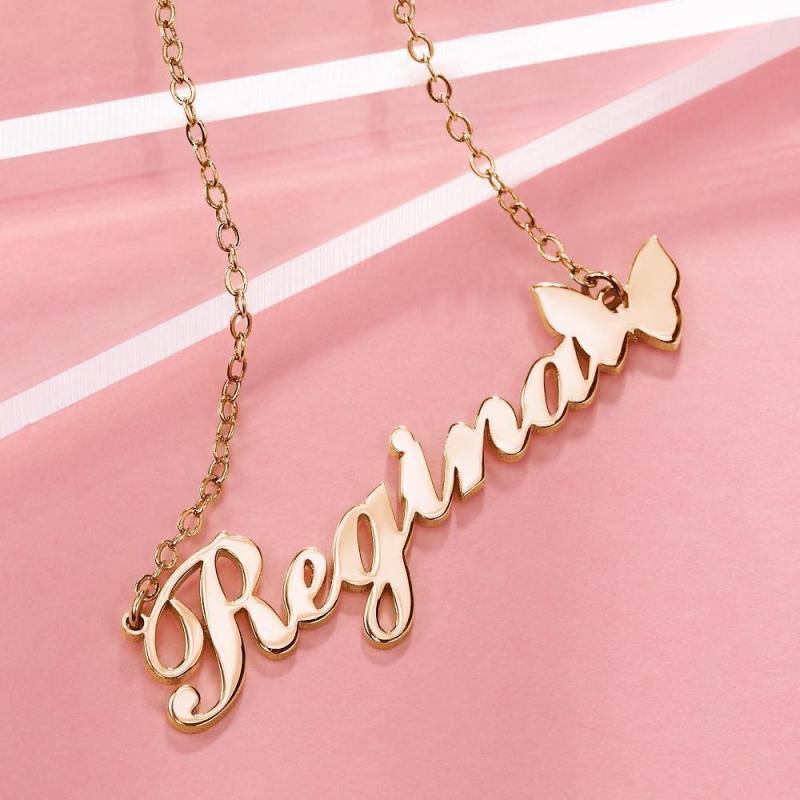 Name Necklace with Butterfly Pendant Christmas Gifts Rose Gold Plated