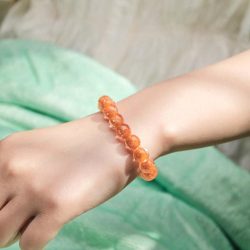 Orange Firefly Glass Stretch Beaded Bracelet Glow in the Dark Luminous Bracelet