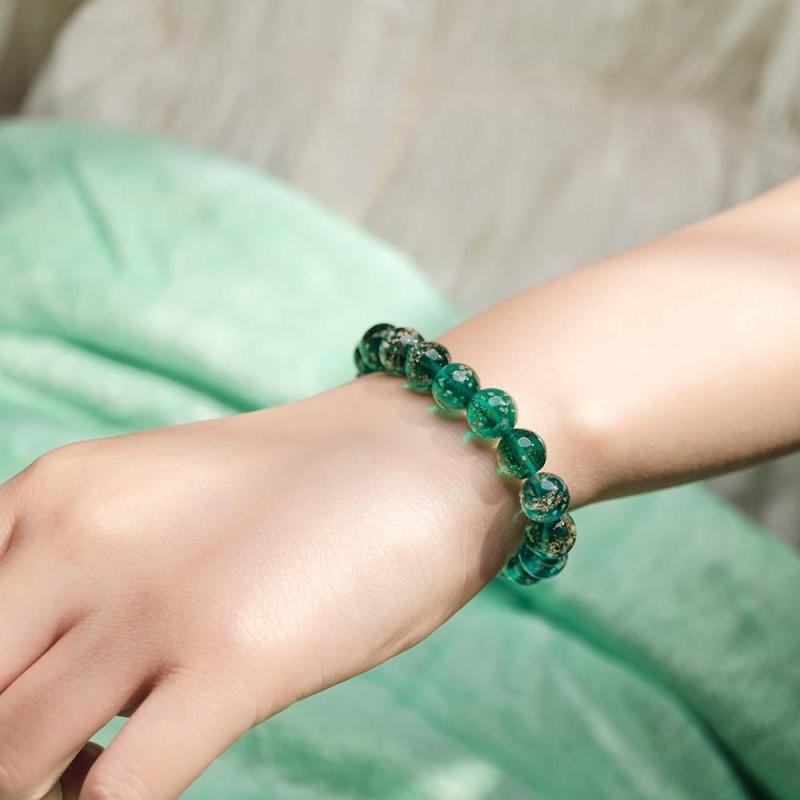 Peacock Green Firefly Glass Stretch Beaded Bracelet Glow in the Dark Luminous Bracelet