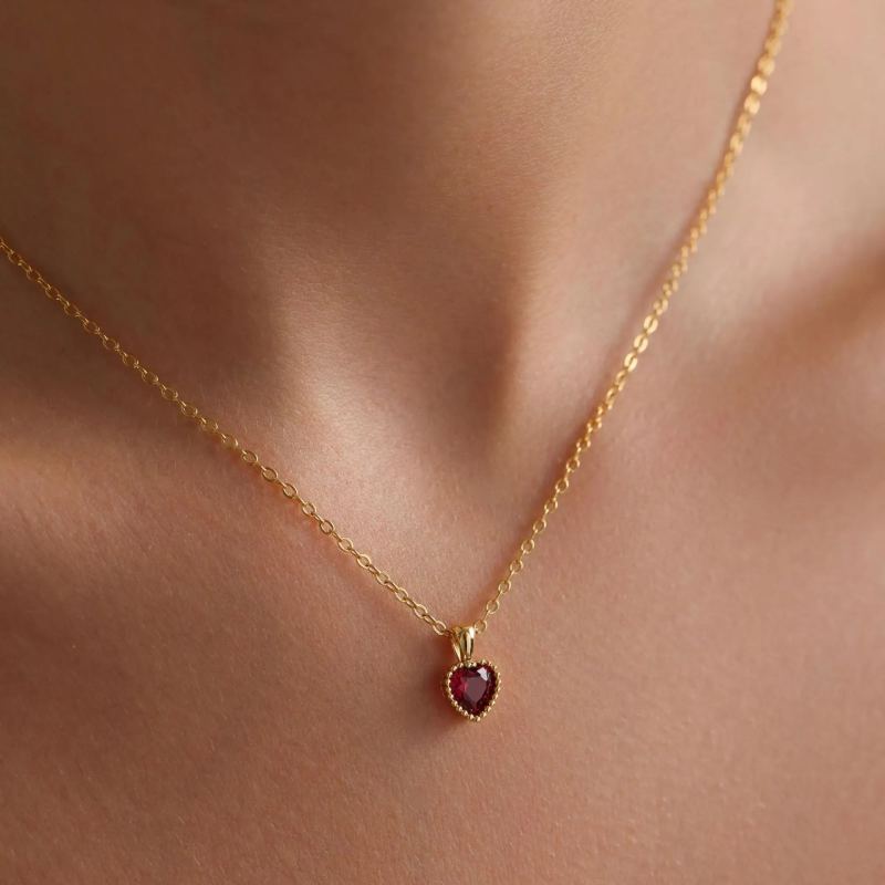 Personalized Birthstone Necklace Custom Anniversary Birth Month Heart Necklace Valentine's Day Gift for Her