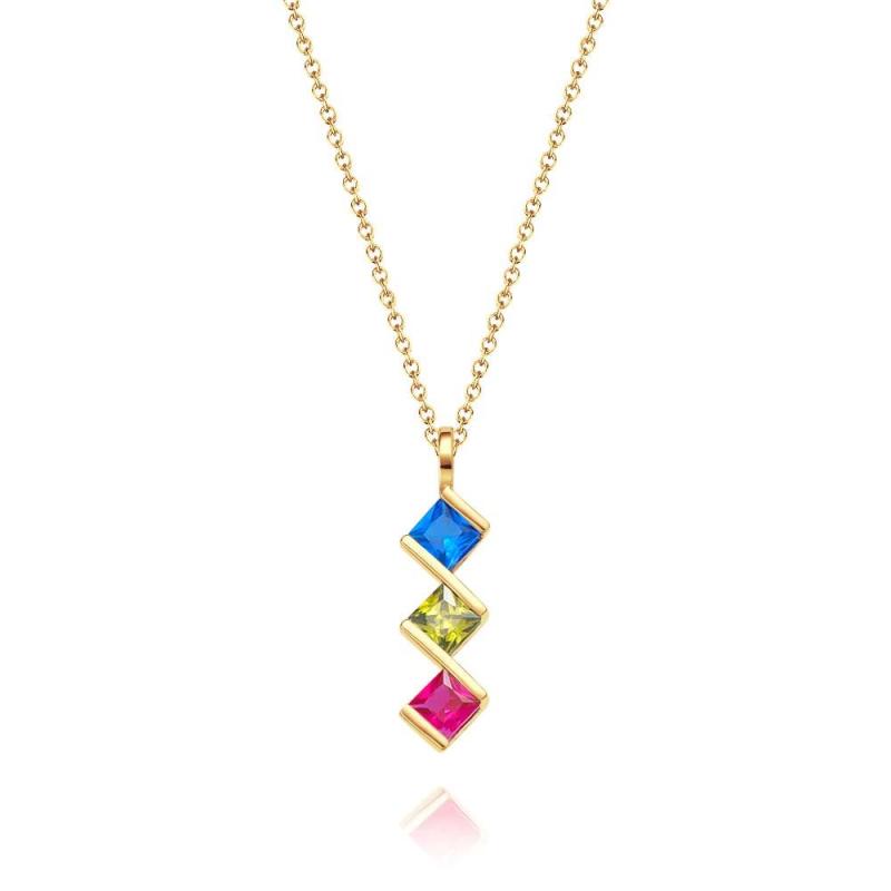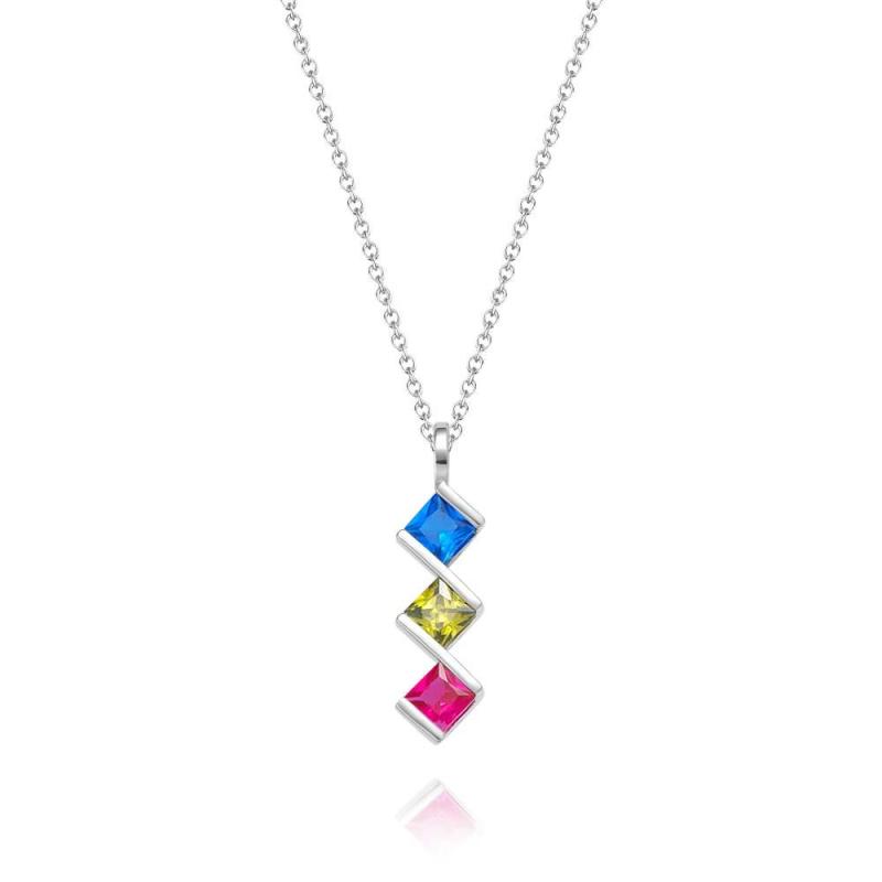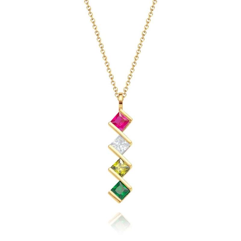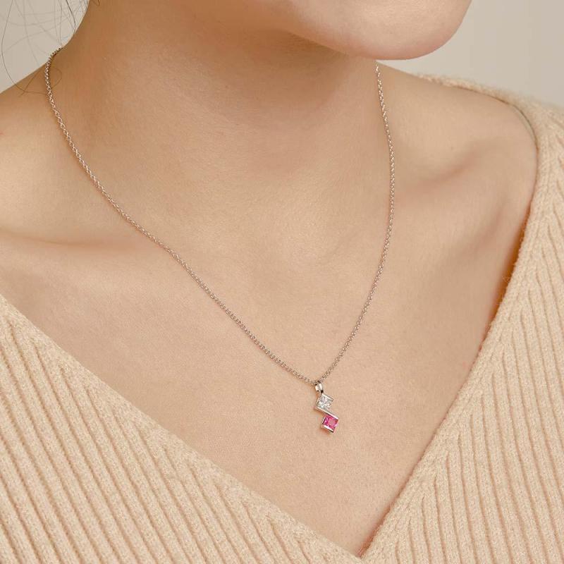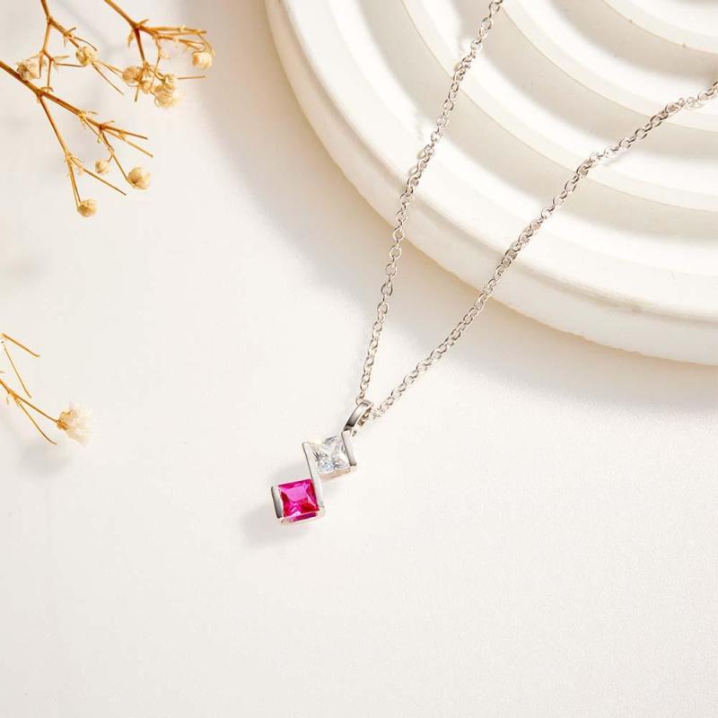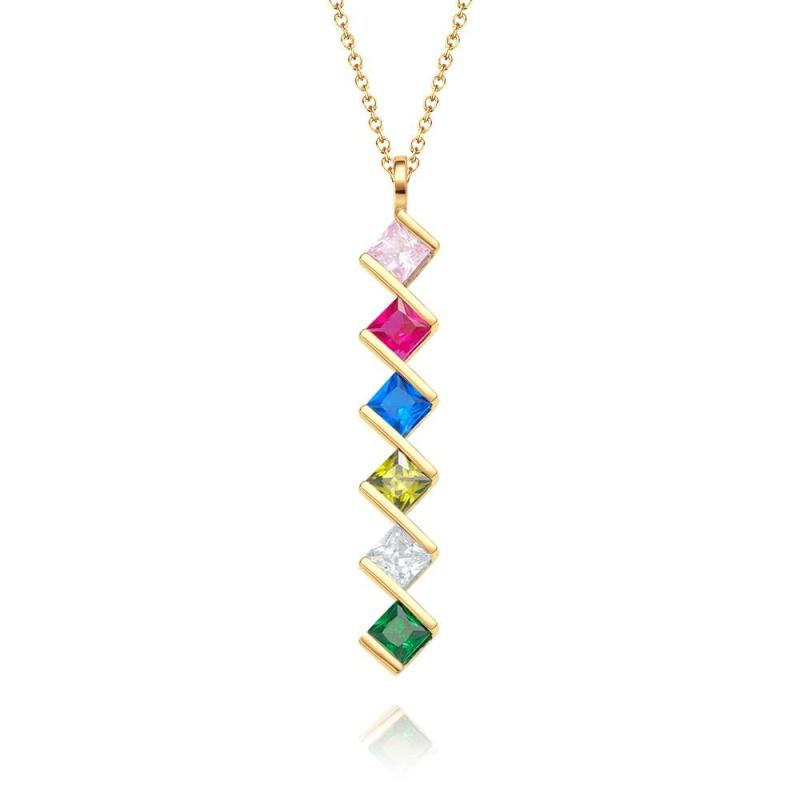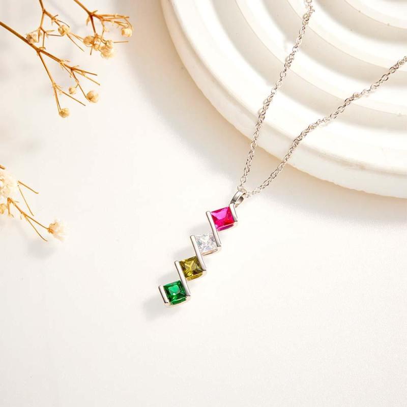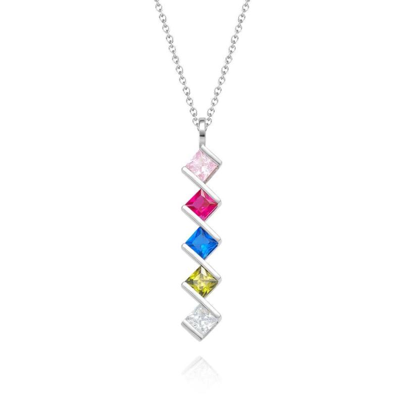 Personalized Birthstone Strip Necklace Colorful Square Diamond Pendant Gifts For Her