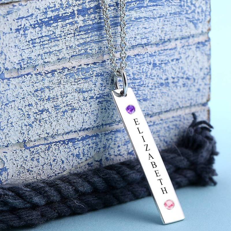 Personalised Birthstone Vertical Bar Necklace With Engraving Silver