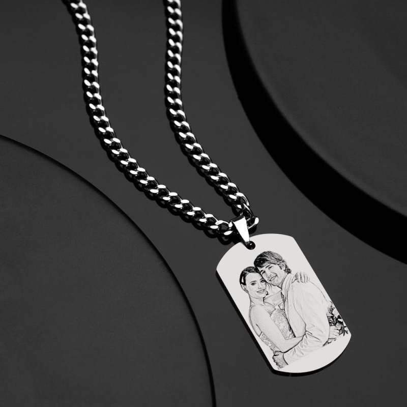Personalized Calendar Photo Dog Tag Necklace Mens Engraved Dogtag