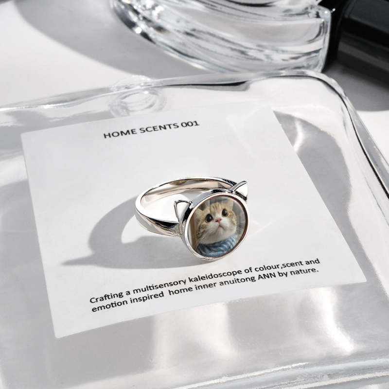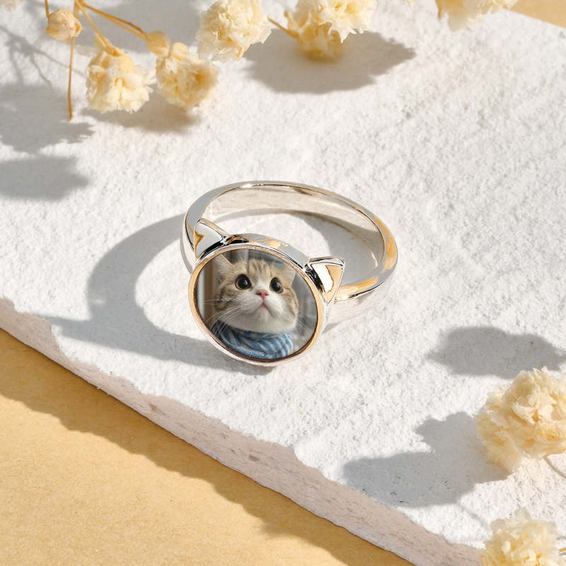 Personalized Cat Head Photo Ring Gift for Pet Lovers Custom Photo Gift