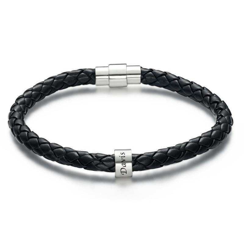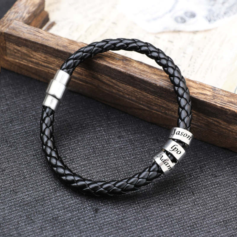Custom Men's Beaded Leather Bracelet Custom Bead for Him 1-6 Charms