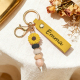 Personalized Daisy Beaded Keyring Custom Name Leather Keychain Engraved Daisy Keychain Faux Leather Daisy Beaded Key Chain Gift for Her