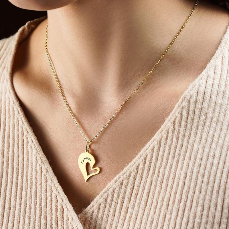 Personalized Engraved Heart Puzzle Necklace Custom Creative Pendant For Couples