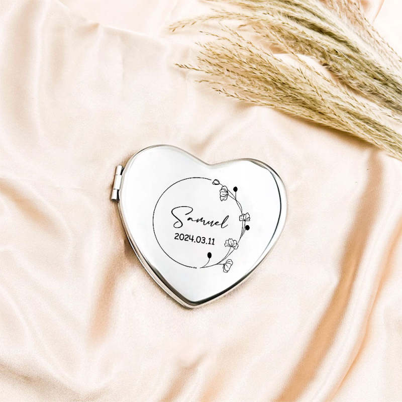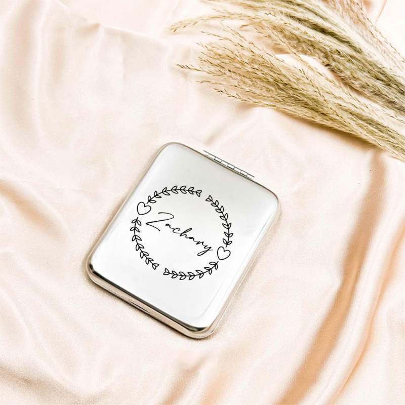 Personalized Engraved Silver Compact Mirror Favor, Custom Engraved Name Pocket Mirror, Gift for Her, Bridesmaid Gifts, Wedding Party Gifts