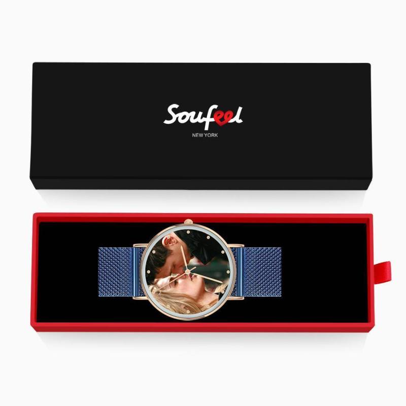 Personalized Engraved Watch, Photo Watch with Blue Strap - Gift for Boyfriend