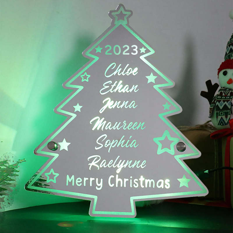 Personalized Family Name Christmas Tree Mirror Light