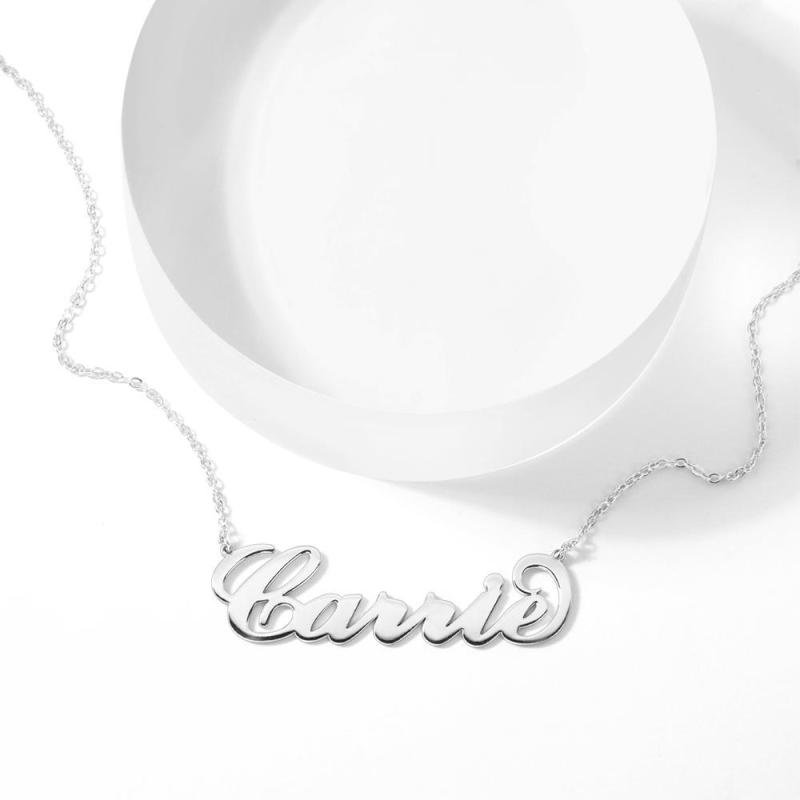 Large Name Necklace, Big Size, Customized Gift for Her Platinum Plated - Silver
