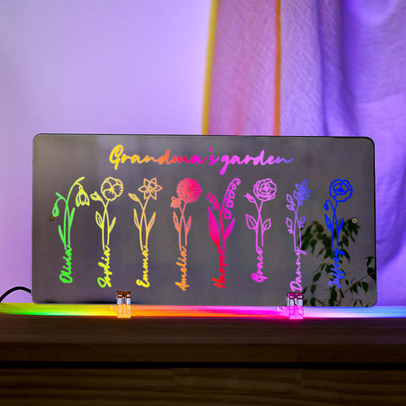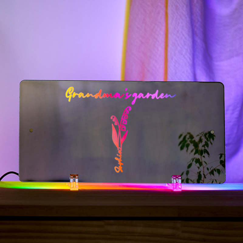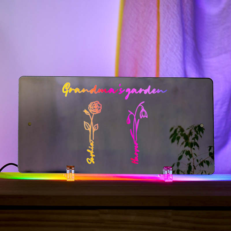 Personalized LED Name Mirror Light Grandma's Garden Sign with Birth Month Flower