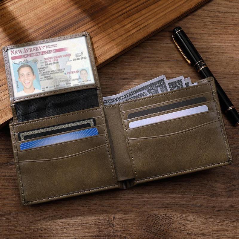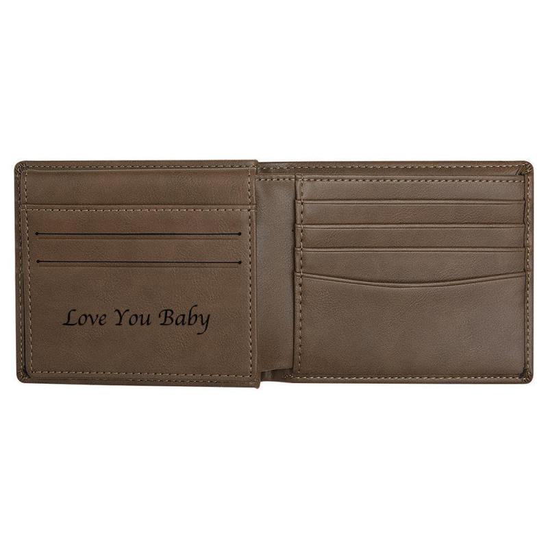 Men's Custom Engraved Leather Wallet Anti-Theft Brush RFID Protected for Family Anniversary Gift- Light Brown