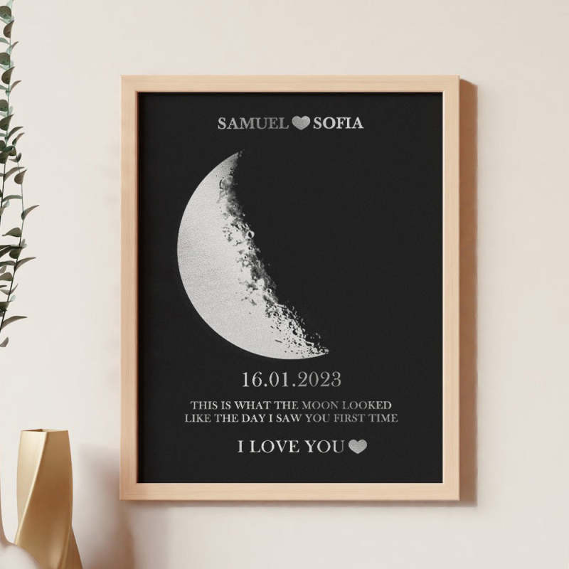 Personalized Moon Phase Foil Print Wooden Frame with Custom Text