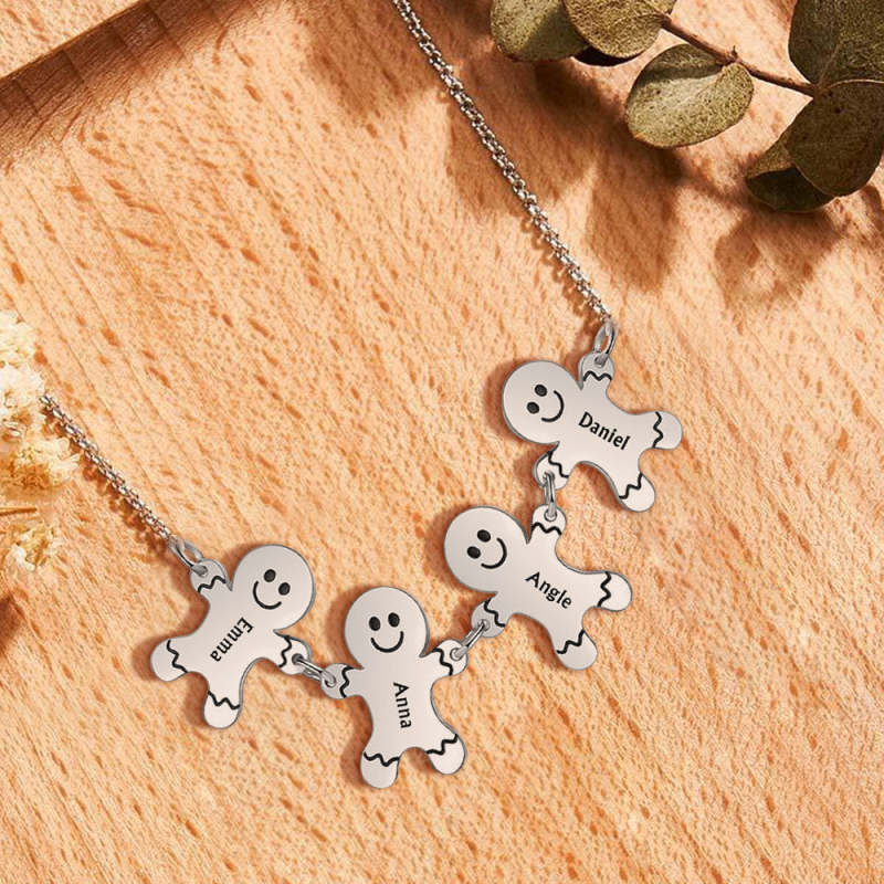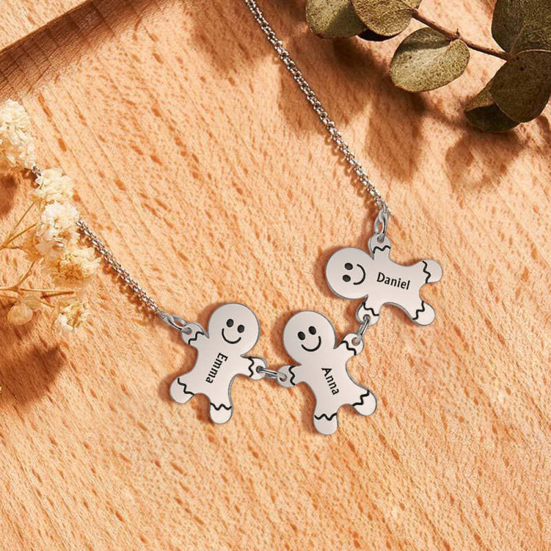 Personalized Name Gingerbread Men Necklace Christmas Gift