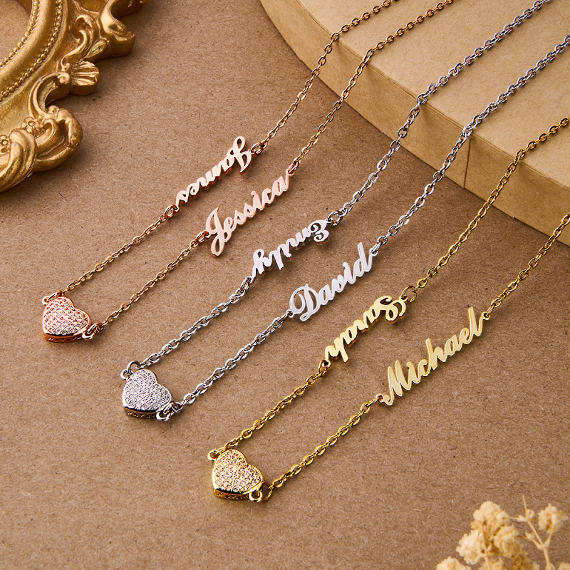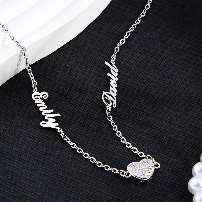 Personalized Pave Heart & Name Charm Necklace Custom Name & Diamond Heart Dainty Necklace Couple Name Necklace Gift for Her
