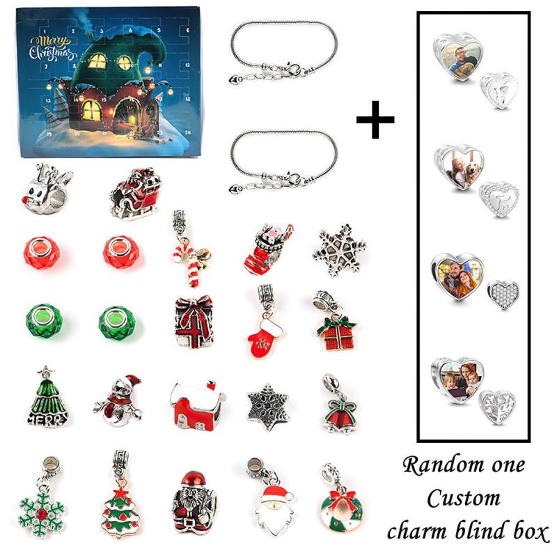 Personalized Photo Charm Christmas Charm Surprise Blind Box Bracelet 24 Calendar Countdown Gift Box Bracelet DIY Charms